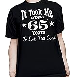 - Birthday gifts for men turning 65 - It Took Me 65 Years To Look This Good - 65th birthday shirt for him. This t-shirt design is available in a men's or women's fit, sizes Sm-5X with several color options to choose from. This design was created by ShirtInvaders and custom screen printed in our Texas production facility using only the highest quality materials. Printed with an eco-friendly, softened plastisol or water based ink to create a vibrant design that is also soft to the touch and very easy to wear. Not only is it easy to wear, but it will last too! This is not just another last minute, random birthday gift idea designed for single use... ShirtInvaders branded t-shirts are created to be worn. A 65th birthday gift idea that will be loved, appreciated and actually used! A great option for a unique birthday gift, Father’s Day gift, Christmas gift or just an unexpected surprise… and with every year offered, this shirt would make a great gift for anyone. Our t-shirts work for any and all occasions. We have a large selection of dated or year specific designs and gifts to choose from with a variety of color options and sizes to fit everyone. ShirtInvaders brand designs are created with our unique vision, style, and attitude. We want to impress everyone with our quality, our creativity, our speed and our motivation... From our customers and competitors to our own designers and printers. We’re not just a t-shirt shop, we are a unique brand with a hunger for success, a motivation to impress and a drive to set new industry standards.