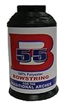 100% polyester; similar to dacron but with better durability and lower stretch;Primarily used for recurves. Can also be used on older compound crossbows and traditional bows without reinforced limb tips.;Recommended strands: 12-16 for recurves;Approximate feet per pound waxed: 4,302 BCY B55 Bowstring is made of 100% polyester similar to Dacron but with better durability and very low stretch. This string is primarily used for recurves, but is also compatible on older compound crossbows and traditional bows without reinforced limb tips. BCY recommends 12-16 strands for recurve bows.