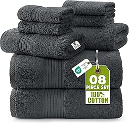 - Utopia Towels - 8-Piece Premium Towel Set, 2 Bath Towels, 2 Hand Towels and 4 Washcloths -100% Ring Spun Cotton - Machine Washable, Super Soft and Highly Absorbent