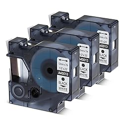 - Package Includes: 3 pack compatible with DYMO 45013 label tapes. Size: width: 1/2" (12mm); length: 23' (7m). Color: black on white. Features: water resistance, fading resistance, sunburn resistance, abrasion resistance, chemical resistance, strong adhesion, temperature prevention. Can be used indoor and outdoor, both hot and cold environment. Compatible with Dymo Label Makers and 3M Label Printers: DYMO LabelManager 160, DYMO LabelManager 210D, DYMO LabelManager 220P, DYMO LabelManager 260P, DYMO LabelManager 280, DYMO LabelManager 360D, DYMO LabelManager 420P, DYMO LabelManager PnP, DYMO LabelManager 100, DYMO LabelManager 120P, DYMO LabelManager 150, DYMO LabelManager 200, DYMO LabelManager 300, DYMO LabelManager 350, LabelManager 350D, DYMO LabelManager 400, DYMO LabelManager 450, DYMO LabelManager 450D, DYMO LabelManager 500TS Touchscreen, DYMO LabelManager PC, DYMO LabelManager PC II, DYMO LabelManager Wireless PnP (DYMO LabelManager Wireless Plug N Play) DYMO LabelPoint 100, DYMO LabelPoint 150, DYMO LabelPoint 200, DYMO LabelPoint 250, DYMO LabelPoint 300, DYMO LabelPoint 350 DYMO LabelWriter 450 DUO, DYMO LabelWriter 400 Duo 3M PL100, 3M PL150, 3M PL200, 3M PL300 Attention please: the new design no longer fits some older machines (such as Dymo 1000, 2000, 3000, 3500, 4000, 4500, 5000, 5500, Dymo Pocket)