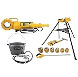 Steel Dragon Tools 700 Power Drive Pipe Threader 41935. Steel Dragon Tools 12-R Manual Ratchet Pipe Threader with die heads and dies. Includes Steel Dragon Tools 418 Oiler Bucket and 2A Pipe Cutter. Also includes Steel Dragon Tools 460 Tripod Stand Chain Vise. Pipe Threading Capacity: 1/8 in. to 2 in. (3 mm to 50 mm).