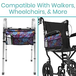 FITS ALL WALKER STYLES: Adjustable loop fasteners allow the Vive walker bag to easily attach to the front of any walker style and width, including bariatric walkers, standard walkers and dual-point folding walkers. HANDS FREE GRAB AND GO BAG: Easily keep essentials at hand with the large inner compartment with a secure zippered closure. The sturdy nylon bag can hold a purse, a change of clothes, or necessary medical supplies. Three convenient outer pockets provide easy access to everyday items such as drinks and snacks, glasses, electronic devices and more. SECURELY ATTACHES WITH STRONG FASTENER LOOPS: Heavy duty fastening material securely holds the walker bag in place. Seven individual loops are reinforced for a durable accessory bag that easily attaches to any walker. LIGHTWEIGHT WATER-RESISTANT AND MACHINE WASHABLE: Constructed with a durable, lightweight material, the versatile walker bag is water-resistant to keep contents safe and dry. The durable nylon material is machine washable for added convenience. For best results, machine wash in cold water and allow bag to air dry. VIVE GUARANTEE: 60 day unconditional guarantee so you can purchase now with confidence.