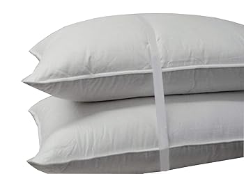 Cotton {Material} Soft White Down Pillows, 500 Thread count 100% Cotton Shell smooth cover is a skin-friendly, soft, and breathable cotton shell, while also being durable. Provides the look and feel of luxury and elegance. {Premium Comfort Soft} At 650 fill power, a Standard size pillow is overfilled with 27 ounces of allergy free down clusters to provide the support that cradles the head and neck; ideal for side sleepers yet also allows back and stomach sleepers to have a blissful night in a deep sleep {Shell Features} The double silky piping around the edges provides a clean, hotel-like finish, while also helping prevent fallout from the filling and allowing the pillow to maintain a luxurious, high loft. {Includes} Set of 2 Down Pillows, Allergy-Free. Brand New and Factory Sealed, Standard Queen size Down Pillows, 20 x 28 Inches. {Care} These Premium Down pillows are packed tightly during shipping. Allow several hours after unpacking to allow them to recover their full loft. Or, put them in the dryer on no heat for 20 minutes to help them recover their loft quicker. Dry clean only. {Returns & Refunds Made Easy} Our customer satisfaction is our top priority. All of Our Down Pillows are encased in clear, zippered packaging that provides the complete product labeling and description of the item.
