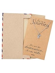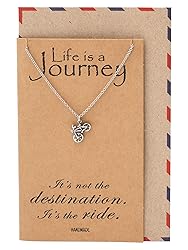 AUTHENTIC AND HANDMADE DESIGN. A dainty minimalist gift that comes with a card with a quote that reads: "Life is a Journey It's not the destination. It's the ride." INSPIRATIONAL GIFT. A necklace for men and women with trademarked packaging. TA dainty necklace that tells your story. A quality-built accessory that's durable, long-lasting, and stylish. ADJUSTABLE, DURABLE, SAFE. The pendant is made of silver rhodium plated material. The chain is made of stainless steel, known for it's durability and non-tarnishing characteristic. The length is adjustable from 16 to 18 inches. The jewelry is nickel and lead free. GIFT-GIVING READY! This is a great present for occasions like birthdays, anniversaries, graduation, valentine's day, Christmas, Easter, Mother's Day, etc. Excellent presents for mom, sister, BFF, grandma, etc. Everything is included so you don't need to buy a separate greeting card or gift package. They will be delighted to receive the jewelry with creative packaging. Proudly USA-owned, we stand behind our products with a 90-day hassle-free return policy. Our satisfied customers are a testament to our commitment to quality and service, which drives our growth and allows us to offer an ever-expanding selection of designs for you to enjoy.