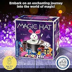 - Enter the world of magic and sorcery! With the magic hat and rabbit puppet, as well as more than 40 other magic props, kids as young as six years old can learn and perform 35 magic tricks. The manual teaches most of the tricks in three easy steps accompanied by color illustrations, first clearly explaining which magic props are needed, then how the trick is prepared, and finally how it is performed. With some practice, it becomes easy to stage a magic show filled with fun and successful tricks that will amaze your audience. Pull a rabbit from a seemingly empty hat. Make a ball disappear from a magic cup, reappear again, and change color. Make cards grow and shrink. Make a coin disappear and reappear with a magic coin box. Use x-ray vision to magically see symbols through a solid, opaque surface. Make your magic wand float, bend, and grow. Magically change the color of a ring, duplicate the ring, and make it pass through the wand. Little foam rabbits appear, disappear, multiply, and move around as if by magic. Astound your audience with rope tricks in which knots untie themselves and dice tricks where dice change location and color inside a magic tunnel. Conjure up money as if out of thin air. Make rabbit cards appear and disappear. Learn simple card tricks with special cards. For one magician, ages 6 and up, and many audience members.".