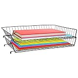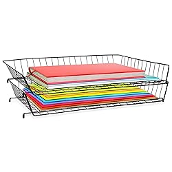 All-Purpose Desk Organizer Tray – Our versatile, flat wire baskets are designed for desktop storage and holding inbox and outbox mail, documents, artwork, and files. Smart, Stackable Design – These large desk tray organizers feature a well-balanced base that lets you stack multiple units on top of one another to create tiered access. Slip-Resistant Rubber Feet – The bottom of each large desk tray features silicone-tipped feet that help prevent it from scratching or sliding around on a wood surface. Personal or Professional Use – Crafted with a heavy-duty metal wire frame these baskets can be used in your own home office or for filing away papers at work. Unbeatable Customer Assurance – We take pride in every Ruby Paulina LLC product that we sell and back every order by a no-questions-asked money back . Note: There may be a little fluctuation is size since the top is flared to create a adequate base for stacking.