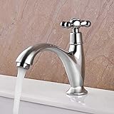 - Bathroom single cold faucet combines a cross handle design with modern sensibilities. The convenient single handle allows for easy flow control. The rv faucet adds a unique and high-end touch to your bathroom. It injects water into the basin at a perfect angle, and the soft water bubbler protects your hands. The bathroom sink faucet 1 hole features a smooth and bright chrome finish, resembling a mirror. The brass body and high-performance ceramic valve core, tested rigorously for water durability, ensure practicality and longevity. The bathroom sink taps includes a 60cm (23.6") water pipe, SUS304 stainless steel braid, and standard 9/16" compression thread. Enjoy peace of mind with our 3-year manufacturer's warranty on the chrome bathroom faucet. For any questions, please contact us to enhance your laundry experience.