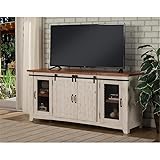 Martin Svensson Home Rustic 65” Solid Wood TV Stand with Storage, White and Aged Distressed Pine