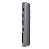 - The Satechi Aluminum Pro Hub Adapter is the newest addition to our USB Type-C collection and the perfect companion for your new 2019 MacBook Pro or MacBook Air. Sleek and compact, the Pro Hub Adapter features a USB-C PD port, USB-C data port, 2 USB 3.0 ports, 4k HDMI, and a SD/Micro card reader. Simply, plug and play to expand your MacBook’s capabilities. Designed for MacBook Pro & Air models with dual USB-C ports. Fast USB-C Connection It's USB-C PD port allows data transfer speeds of up to 40 Gb/s to download movies, move files and charge USB-C devices, even faster than before over Type-C connection. Please note the second USB-C port is for data transfer use only. Upgrade Your Ports Your favorite TV shows are just an HDMI port away. Enjoy crystal clear video with our added 4k HDMI port for crisp, high-resolution output to your HDMI-enabled external monitor. We recommend to use HDMI 2.0 cables for optimum performance and a direct HDMI to HDMI connection. Kept the Essentials Don’t worry, your everyday ports are still here. Utilize the 2 USB 3.0 ports for extra data transfer and Micro/SD card reader for video and photo editing – on the go. Match Your MacBook Complement your Apple products with the Pro Hub’s brushed aluminum design for a sleek and modern feel. Important Notes The operating temperature is 86-122°F For best connection, please use without a laptop case Not compatible with Apple SuperDrive.