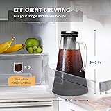 HEALTHIER & SMOOTHER COFFEE, NOW BIGGER AND BETTER – Cold brewing is 70% less acidic than hot brewing. And richer in taste. Our cold brew pitcher extracts coffee concentrate which can be stored and mixed with an endless variety of beverages to create your own perfect, personal cup of joy. Now 1.5x bigger than the original, get ready for more coffee! Recommended grind size: Coarse LOCKS IN FRESHNESS AND FLAVOR FOR UP TO 2 WEEKS – Airtight seal. Easy-access handle. Engineered to perfectly fit within your fridge shelf. Experience refined craftsmanship you can always count on QUALITY YOU WON’T REGRET – 18/8 rust-free superfine laser cut filter, medical-grade stainless steel filter & lid cap. Extra-thick, lab-tested borosilicate glass. BPA-Free silicon airtight seal. Dishwasher safe. New upgrade: Non-slip rubber cushion base for extra protection. Professional home brewing has never been this easy: just mix and pour ICED AND HOT TEA COMPATIBLE – Great for loose-leaf tea. Or tea bags. Brew it hot like a traditional teapot, or brew it cold in the fridge. Take your brewing & hosting skills to the next level SATISFACTION GUARANTEED – We are dedicated to enriching your homemade coffee experience. We take great joy and pride in the quality of our products – which is why we offer a Risk-Free Purchase. In the unlikely event our product fails to meet or exceed your expectations.