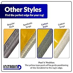 - Transform your flooring products with Instabind Premium Carpet Edge Binding. Designed to simplify the process of edging your rugs, this cotton regular-style carpet edge trim offers a durable, professional finish without the need for sewing or costly installation services. Designed for DIY enthusiasts, Instabind provides an uncomplicated way to give your area rugs, carpets, and other fabric surfaces a polished look with the right colors to match. Each roll of Instabind is 54 feet long, giving you plenty of coverage for all your home projects. The carpet edge binding material ensures a strong hold, making it suitable for securing rug edges and preventing fraying, even in high-traffic areas. Simply peel off the film and press the trim in place for an effortless application. Hot glue is required for proper installation, providing a strong and durable bond. Whether you’re edging a rug, refreshing an older one, or finishing a custom carpet project, Instabind achieves a neat, finished edge every time. Its cotton regular-style fabric not only provides an attractive, well-made appearance but also offers long-lasting durability, ensuring that your rug edges stay intact for years to come. With Instabind, you can achieve a professional-quality finish at home while saving time and money. This edge binding for area rugs fits seamlessly into your home décor projects with minimal effort. Whether you're a beginner or an experienced crafter, Instabind Premium Carpet Edge Binding offers a durable and easy way to transform your carpets and rugs.