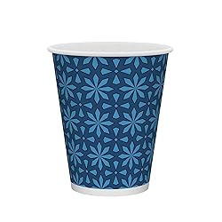- Printed paper cups for cold beverages Blue floral design Sturdy Great for home and business use