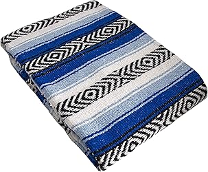 - Let these authentic genuine Mexican Falsa Blankets bring their festive color and beautiful style to your home. These are handcrafted in Mexico with high-quality material. Large 68” X 52” Blanket with Beautiful, bright, vivid colors that complement traditional serape falsa patterns. Tightly woven and highly durable, these blankets are larger, thicker, softer, warmer, and have a higher quality construction than standard Mexican falsa blankets. We believe these are the highest quality and most versatile Mexican Falsa Blankets available anywhere. Ideal use as a Yoga Blanket, Beach Blanket, Throw Blanket, Camp Blanket, and Bedspread. Use for your interior decoration project. Wall decorations tapestry, drapery, cut and sew projects, seat covers, and more. Measures 52 inches wide by 68 inches long. Made from 100% recycled fibers, this environmentally friendly blanket is anti-static, hypoallergenic, and stain-resistant. Bedding: These are large enough to cover a full size or twin size bed when used as a bedspread. Machine wash in cold and tumble dry low or hang to dry. These blankets get softer with each wash. Viva Mexico!