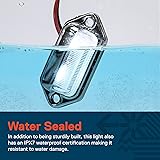 SOLID BUILD QUALITY - Made from unbreakable polycarbonate material and rust-resistant steel making this license plate durable and reliable. WATER SEALED - In addition to being sturdily built, this light also has an IPX7 waterproof certification making it resistant to water damage. MULTI-PURPOSE - With its unique shape, sturdy construction and water-proofing, this LED light is not only suitable as a license plate light but also for various automotive purposes, especially marine applications. DURABLE NAD RELIABLE - By using high-quality components for this license plate light, you get a reliable which is both durable and reliable. You also get a two-year warranty. LAW COMPLIANT - This license plate LED is DOT FMVSS-108 certified making it safe under the confines of the set laws.