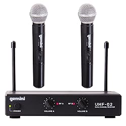 - Our UHF-02M handheld microphone is a lightweight, noise-free, rugged wireless microphone system. With a snug and comfortable fit, it is the ultimate wireless solution for fitness instructors, musicians, active performers, or anyone who needs untethered movement on stage. With a dynamic operating range of 150 feet to ensure you don't lose signal. This audio system offers high-quality voice reproduction with incredible clarity and reliability, at Gemini’s all-time low-price point that can’t be beat. We’ve added in multiple bandwidths offering you a wide range of frequencies to ensure you’ll always have excellent sound reproduction. The rugged yet lightweight design of the microphone is perfect for all day wear. The channel receiver houses super bright RF LED Indicators, that monitors the signal strength, keeping you at the top of your performance. The dual channel receiver has a reliable frequency stability of 517.6 MHz and 521.5 MHz. This portable audio system will take your sound recording quality to the next level. Since 1974, we’ve made gear with our customers in mind. At Gemini, our goal is to design products that offer value and innovation in the DJ, Pro Audio, and Consumer Electronics markets. From the beginning, we’ve evolved and thrived by understanding the needs of our customers and recognizing industry trends
