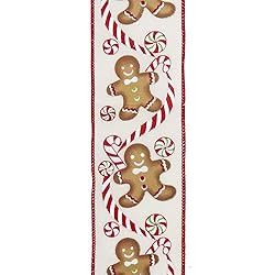 - This woven fabric ribbon is the perfect touch to add to your holiday decor. This white ribbon features gingerbread men and peppermint candy repeating pattern. This ribbon measures 10 yards by 2.5 inch width. We ensure the top quality of this authentic Kurt s. Adler product.