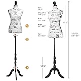 Bonnlo Female Dress Form Pinnable Mannequin Body Torso with Wooden Tripod Base Stand (Monogram Pattern, 6)