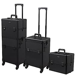 ★LARGE STORAGE ORGANIZER:3 layer availiable for different storage need. Wise size (14.17 x 9.65 x 17.13)"of the bottom size make possible storage for your hair dryer and curling iron. Detachtable divider is designed for your little bottles like nail polishes and sprays.Store all your beauty make up storage cosmetics of various like nail polishes, brushes, eye shadow and other accessories ★DURABLE: High Quality Aluminum Frame and Reinforced Aluminum Corners for Extra Durability of Mefeir 2 in 1 rolling makeup case.Features a Large Base and Detachable Top Case Compartment.SUITABLE and great gift for makeup artist, hair stylist, nail salons or beauty center. ★ADVANCED: 4pcs removable wheels spinner 360 degree (Easily install or remove the wheels) satisfies you travel demand;The handle ribbon on the top part make convenient the bussiness trip with makeup stuffs for freelance makeup artists and bridal artists . ★SPECIAL PARTS:bottom case lid is eqquipped to falicite seperate use;Shoulder Strap for Travel or Outdoor bussiness.A Mirror for Easily Work,4 lockable keys to protect your privacy. ★SMART DESIGN:2 in 1 cosmetic trolley-upper top and big bottom case,Eva Insulate Lined to Keep Cool, Nylon Lined Interior to Protect Cosmetic and Easy to Clean.