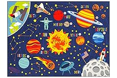 EXPLORE THE SOLAR SYSTEM: Launch into a universe of learning with this colorful rug featuring the planets, sun, moon, constellations, rockets. An adventurous fun way to teach space, science, and STEM through imagination. TRANSFORM PLAY INTO LEARNING: Carefully designed to stimulate your child’s curiosity, creativity and enhance playtime! The vibrant colorful patterns and illustrations engage little ones in learning and make-believe play! EASY TO CLEAN DURABLE SURFACE: Low-pile surface resists shedding and stains, making it perfect for busy homes, classrooms, and daycare. Machine washable for hassle-free cleaning—just vacuum regularly or spot clean as needed. SOFT, SAFE, NON-SLIP: Quality nylon with a non-skid rubber backing and double stitched edging. Gentle on hands and knees. The comfortable mat surface provides a soft area for toddlers and kids to crawl, roll, dance, and play. USE ANYWHERE DESIGN: Designed to look attractive, making it easy to incorporate into the decor of your home, bedrooms, and play areas. Easy to store away or leave out as a permanent room accessory. Ignite creative play!