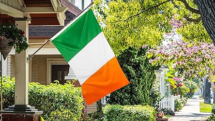 Quality Material: Made from 100D polyester that is fade resistant and anti-fading for long lasting use. Versatile Usage: Lightweight and suitable for indoor or gentle wind areas, perfect for decoration or display. Occasion: Showcase your Irish pride at St. Patrick's Day parties, parades, or any festive event. Easy Assembly: Comes with brass grommets for hanging on a pole or wall, no additional hardware required. Customer Service: We stand behind the quality of our flags, and are always here to help with any questions or concerns.