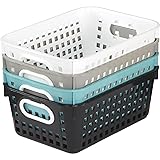 EASY TO CLEAN AND STORE: This basket has built-in handles and a surface that's easy to clean. They also stack vertically to maximize storage. DURABLE AND PRACTICAL: Made from high quality plastic, each basket measures 11" by 7?" by 4?" overall and 9" x 6?" x 4?" inside. These sturdy bins are ideal for classroom, workshop and home settings. AVAILABLE IN FUN COLORS: Baskets are available in different colors to quickly color-code your classroom, office, living room and kitchen to match your d?cor. EFFICIENT CLASSROOM MANAGEMENT: These 4-pack medium-sized plastic book baskets are ideal for teachers seeking convenient and effective storage solutions for their classroom materials HOME ORGANIZATION MADE EASY: These storage baskets are not limited to the classroom; they are also great for home organization, offering a stylish and practical solution for any room