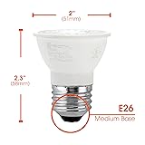 LED PAR16 7W - Short Neck Dimmable light bulb provides 500 Lumens of output; Comfortable Soft White Daylight color; Standard E26 Medium Base LONG LASTING - Lasts 25,000 hours; Uses only 7 Watts replacing the traditional 50W bulb; Shatter resistant; Glossy white outer shell APPLICATIONS - Ideal for ceiling lighting in living rooms, kitchens, basements; Recessed, track, accent, and landscape lighting; Great for china cabinets, range hoods, desk lamps, showcases and displays DIMMABLE - Set the mood in the the room to your preference; 40° Beam Spread; Instant on; Durable bulb will reduce energy consumption and costs ENERGY EFFICIENT - Energy Star and RoHS Certified; UL Listed; Does not contain mercury; Perfect for hotels, restaurants, and retail shops