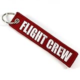 - FLIGHT CREW Keychains are 100% embroidered, with merrowed borders. Keyring is nickel plated for long lasting durability. Help yourself keep track of your keys with our red "FLIGHT CREW" keychain. The keychain is 12.5cm long and 2.5 wide, and the letters are embroidered in white thread.