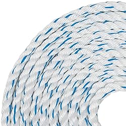 Pelican Rope Vertical Lifeline Rope - 5/8 inch Fall Protection Lanyard - Ladder & Tower Gear - 3 Strand Soft Polyester Rope with Steel Snap Hook Ends - 50 ft.