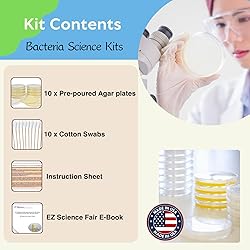 EZ BioResearch Bacteria Science Kit (IV) (Gift Pack): Prepoured LB-Agar Plates and Cotton Swabs. Exclusive Free Science Fair Project E-Book Packed with Award Winning Experiments. (IV Gift Pack)