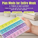 Weekly Pill Organizer - 4-Times-a-Day Pill Planner Pill Box Separates Pills & Vitamins with Daily Morning, Noon, Evening & Night Compartments, Travel Medication Reminder Monday to Sunday