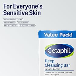DEEP CLEAN: Our bar is designed to deeply clean your skin to rid it of dirt, oil, and impurities all without drying your skin out. FOR SENSITIVE SKIN: Create a clean and more hydrated complexion with Cetaphil's Deep Cleansing Bar. It is perfectly formulated for sensitive skin to leave you with your smoothest, most nourished skin yet all while preventing irritation. HYPOALLERGENIC: Specially crafted for sensitive skin, our cleansing bar is soap free, hypoallergenic, and non-comedogenic, so you can rest assured that our bar gently cleanses and tones skin to remove pore-clogging dirt, oil, and makeup without any harmful additives to leave you glowing on the inside and outside. FACE AND BODY: Our bars are designed for total body care. Save time by cleansing your face and body in one easy step. EVERYDAY USE: Make our cleansing bars a part of your daily skincare routine. Refresh and clean your skin with our Deep Cleansing Bar, then try stacking with one of our moisturizers for total body care.
