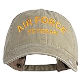 e4Hats.com Air Force Veteran Text Embroidered Washed Solid Pigment Dyed Cotton Twill Brass Buckle Cap