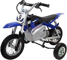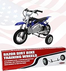 - Now young children learning to ride on Razor MX125, 350 400, 450, SX500, 650 electric motorcycle can use our proven Training Wheels system we developed. Our Training Wheels Trainer system allows for adjustability and adaptability. With our Trainer you can adjust the wheel height and mounting position for your type of riding terrain as well as rider’s skill level. As the rider gets better raise the wheels incrementally higher until balance is achieved. Start with training wheels fully down and as your riders skills and confidence increase raise the training wheels incrementally until they are fully up. Installation is easy because our Trainer is specifically designed to fit the Razor 350 or 400 model. Inclusive directions and video walk-you through assembly. Our Trainer mounts under the motorcycles swing-arm for the best balance, strength and durability. We use CNC machined bracket mounts for perfect fit every time. No “stamped” or “punched” material that falls out of specification and ends up not fitting your bike. The Universal Trainer will give children quality “seat time” to develop important riding skills while offering parents complete confidence and satisfaction. The greatest attribute of the Razor Trainer is that it is adjustable. As your first time rider gets better you can adjust the height of the wheels to slowly help your rider achieve balance. Manufactured by Hardline Products the largest manufacturer of youth training wheels for motorcycles.