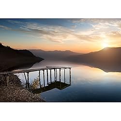 wall26 - Fishing Jetty on Mountain River at Sunset - Removable Wall Mural | Self-Adhesive Large Wallpaper - 66x96 inches