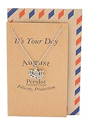 quan jewelry Handmade Lotus Flower Pendant Imitation August Birthstone Necklaces for Women, OM Symbol Necklace, Birthday Gifts for Women with Greeting Card