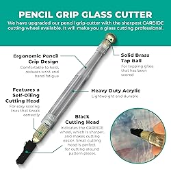 CREATE BEAUTIFUL works of art in Stained Glass and Mosaics with these to Premium hand tools. These are the same tools we have used in our Professional Stained Glass Studio for the last 30 years. Perfect for beginners and glass artisans alike! INSTRUCTIONAL VIDEO INCLUDED! For our customers only, we created a 50 min instructional video. Watch as we cut an entire fan lamp project. Learn the tips and tricks to successfully cut glass. We even include a copy of the same pattern we cut out in the video. FOLLOW ALONG AS YOU LEARN STAINED GLASS! INCLUDES: PROFESSIONAL CARBIDE Oil Fillable Pistol Grip Cutter AND Oil Fillable Pencil Grip Cutter, Precision 3/8" Breaking and Grozing Pliers, 1" Running Pliers with a BONUS pair of Rubber Tips,, Lightweight Safety Glasses, and the same fan lamp pattern we use in the instructional video. INCLUDES EVERYTHING YOU NEED for Stained Glass, Fusing, and Mosaic Glass work. FEATURES: Spring loaded handles on the Breaking and Grozer Pliers and Mosaic Cutter to prevent hand fatigue. Our Textured Tillery Teal handles are cushioned for comfort and provide better grip than the red handled pliers. Our Pistol and Pencil Grip CARBIDE cutters improve ergonomics and feature the correct, SMALLER CUTTING HEADS, for pattern pieces. PURCHASE WITH CONFIDENCE From an AMERICAN Amazon Seller that understands stained glass and stained glass tools. GOOD TOOLS ARE AN INVESTMENT to be purchased ONCE. The highest quality tools on Amazon that will last you a lifetime with proper care.