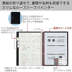 [Notebook-Like Binder] A5 Kokuyo's Campus Smart Ring binder notebook, 20 holes 8.7x6.2 inches sprial notebook binder has frosted PP black cover, and the maximum capability is 25 sheets loose leaf binder papers. [Smart Ring System] First, make sure the stopper is unlocked. To take off the lock, place your finger through the bottom hole of the lock and push it out to the left. Once you get stuck here, you may grab onto the bottom tabs on the side and pull those out, then hold the lock and pull it up . Second, open the binder rings, press the plastic button on the top. Third, after you have replaced papers, pinch the rings together, the binder will be closed. [Ultra-thin and lock] The thin binder allows you to put the notebook binder into your bag stress-free and save space. Because of the smart ring binder design that is easy to open and close, the slim binder has a lock keeps the rings from accidentally opening, so you can securely carry this notebook in your bag. [360 Fold 180 Lay Flat] Great refillable notebook binders for meetings and classes, they not only lay flat for writing, but the cover flips back to save space on your desk. The slightly wider and frosted cover protects the index tabs from damage and makes them clearly visible. [10 Kokuyo Original Papers] The Campus notebook binder contains instruction pages and 10 sheets of A5 Kokuyo Campus Sarasara loose-leaf paper, each with 28 lines of 6mm dotted lines. The paper is pH neutral and of archival quality. Notebook-like binders have a maximum capacity of 25 sheets. Kokuyo also offers Grid, Plain and Ruled styles of loose-leaf paper.