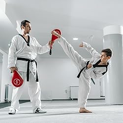 Essential Martial Arts Gear: Elevate your training with the Juvale Taekwondo Kick Pads, a vital addition to any taekwondo training equipment collection. These expertly crafted kick pads are perfect for enhancing your precision and power in martial arts Resilient and Long-Lasting: Constructed from durable PU material, these taekwondo pads withstand rigorous training sessions. Their robust design ensures prolonged use, making them ideal for both taekwondo and kickboxing training Secure Grip Advantage: Experience enhanced control with the wrist straps on these kick pads, preventing slippage during intense workouts. Maintain focus and confidence as you practice various martial arts techniques, from tae kwon do to MMA Optimal Size for All: Measuring 15 x 2.5 x 7.5 inches, these taekwondo kick pads are perfectly sized for practitioners of all skill levels. Whether you're a beginner or an advanced martial artist, these kicking pads offer a precise fit and reliable performance Instant Impact Feedback: The built-in boards in these taekwondo kick pads emit a sharp sound upon contact, providing immediate auditory feedback. This feature aids in assessing strike quality, crucial for improving techniques in karate and kickboxing