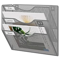 High-Capacity Wall File Organizer: 3 pocket metal mesh file organizer holds 300+ sheets per pocket. Perfect for heavy paperwork in offices, classrooms, or home entryways. High-efficiency File Management: Wall mounted file organizer features arched design, open mesh front enables quick visual access to contracts, bills, or student assignments, each tier with removable label for document files classification. Space-Saving Wall Installation: Zero-assembly wall-mounted installation in tight spaces to maximize vertical space in offices, homes, or classrooms. Ideal above desks, in dorm rooms, or as mail sorter near doorways. Metal Mesh Mail Organizer: Metal construction with powder coat finished wall mounted mail organizer, rust-resistant for long-lasting home/office use. Take full advantage of your vertical space and keep your desk clean. Versatile & Mounted: Easy wall mounting and variety of use, including homes, offices, schools, and other work environments, to help you stay organized and keep your important documents easily accessible , perfect vertical organizer for mail, magazines, documents.