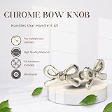 Perilla Home Set of 6 Chrome Bow Knobs - Decorative Flower Knobs - for Room, Kitchen, Cabinet, Hardware, Cupboard, Door, Knobs, Dresser, Wardrobe, Closet and Drawer Pulls
