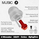 TRUE-TO-LIFE AUDIO EXPERIENCE. Immerse yourself in live music without compromising on sound. Our earplugs for concert deliver crystal-clear audio which allows you to enjoy music and protecting your hearing at the same time. No tinnitus or ringing ears the next day! PROTECT YOUR HEARING - Noise-induced hearing loss is irreversible. Our high fidelity ear plugs are powerful noise reduction ear plugs, effectively protecting your ears from high decibel levels. Don't let loud music damage your hearing CUSTOMIZABLE TO YOUR NEEDS: Each of our concert earplugs comes with Multiple Filters & Sizes to fit your preferences. Three interchangeable filter sets in Medium, High, and Max for noise reduction up to 26dB. Two sizes (small and medium) for a perfect fit COMFORTABLE, REUSABLE, HYPOALLERGENIC, SAFE: Our ear plugs for concerts are made from ultra-soft lightweight silicone that is hypoallergenic and safe for sensitive ears. The reusable design saves money over time TRUSTED AND TESTED: Our high fidelity ear plugs are endorsed by industry leaders such as NPR Music and Red Bull Music, ensuring quality, effectiveness, and peace of mind