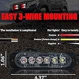 【HIGH INTENSITY LED LIGHT】Super Bright led Strobe Lights, adopting 6pcs high intensity LED chips improve the overall visibility, which are much brighter than the standard Led Strobe Lights. Super bright at day and night to ensure your driving safe. 【STURDY AND DURABLE】Made of Aluminum alloy housing, which has best heat dissipation ability. High transmission PC lens offer optimum protection, waterproof, lightningproof, dustproof, anti-collision, anti-exposure, designed to withstand any harsh environment. The lifespan of is over 50,000 hours. 【16 FLASHING PATTERN】16 different flashing patterns, include constant mode and directional flash patterns (Left, Right, and Center Out, and so on), Last Pattern Memory Recall. 【EASY 3-WIRE MOUNTING】Red wire to positive. Black wire to negative. Yellow wire to positive change flashing pattern. (Release the yellow wire, the mode will fixed) 【WIDE APPLICATION】The LED Strobe Lights universal for all vehicles with 12V power source. Such as Truck, SUV, Pickup, Off road vehicle, ATVs, engineering vehicles, emergency vehicles, firefighter vehicles, law enforcement, postal service, construction vehicle, etc.