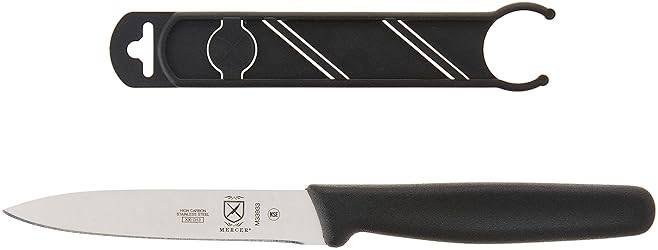 QUALITY CONSTRUCTION: Crafted with high-carbon Japanese steel for durability, and honed to a sharp edge SUPERIOR DESIGN: Built to last textured handle offers a non-slip grip with added comfort and durability, and slide on guard ensures safe transport and storage BEST USE: This utility/bar knife is made to effortlessly cut through fruit and other foods without tearing EASY CARE: To maximize the performance and longevity of your Mercer knives, carefully wash by hand after each use with warm water and mild soap; rinse and dry completely with a soft towel. Do not place in dishwasher or submerge for long periods of time MERCER CULINARY: Mercer continues to introduce innovative, quality products allowing foodservice operations to run effectively and efficiently; perfect for professional use or the home cooking enthusiast