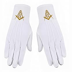 Gold Square & Compass Masonic Embroidered Cotton Gloves - [Gold & White]
