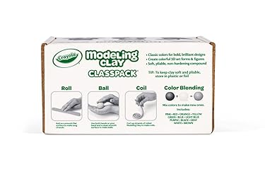 CRAYOLA MODELING CLAY: 24 piece bulk set of kids' Modeling clay in 12 colors. CLASSIC COLORS: Features classic Crayola colors including Red, Pink, Orange, Yellow, Green, Blue, Light Blue, Purple, Black, Gray, White, and Brown. REUSABLE CLAY: Non-hardening clay, is soft and pliable for repeated use. SCULPTING MADE EASY: Great sculpting clay for kids and adults to create in 3D. CRAFT & SCHOOL SUPPLIES: Ideal for classrooms, art rooms, and group activities. SAFE AND NONTOXIC: Ideal for ages 4 & up.