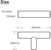 - If you need longer screws, please find the link: https://www.amazon.com/dp/B01875WOGW?th=1 Specification: --Elegant Flat Black Finish --High quality stainless steel material --Single Hole Cabinet T Bar Knobs --50mm(2”) Overall length --Diameter:12mm(0.5”) --1-1/4” Projection (from mounting surface to top of pull) --Individually bagged with Mounting Screws --Including 12 pack cabinet handles/pulls Features: √Each finish is richly and beautifully crafted for a difference you can clearly see √Every edge, corner, and detail is individually inspected and polished √Solid metal construction for long lasting durability √Coordinates with cabinet hardware from the Modern Metro Collection √Backed by a Lifetime Warranty for the original purchaser Cabinet/Drawer Thickness Guide: ●0.47”--0.75” thick drawer/cabinet will need 1” long Screws. ●0.67”--0.94” thick drawer/ cabinet will need 1-1/5” long Screws. ●0.87”--1.14” thick drawer/cabinet will need 1-2/5" long Screws. ●1.06”--1.34” thick drawer/cabinet will need 1-3/5" long Screws. ●1.26”--1.54” thick drawer/cabinet will need 1-4/5" long Screws. ●1.46”--1.73” thick drawer/cabinet will need 2” long Screws. About Probrico: Probrico has been known for offering decorative Home hardware: pulls and knobs, drawer slides, door hinge, concealed hinge, door locks and more. In recent years, we’ve expanded our product offering to enhance the look and feel of various rooms in the home. Take a look at our decorative cabinet hardware featuring unique finishes and designs, as well as functional cabinet hardware to fit a variety of cabinets and drawers. Probrico offers solutions for all of your home décor needs.