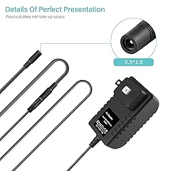 Input: 100 - 240 VAC 50/60Hz Worldwide Voltage Use Mains PSU; Cable Length: total 4FT, no worry about the distance between the device and socket. Industry Quality: CE certified and tested by manufacture. Over Voltage Protection, Over Heat Protection. Note: Please make sure the model of your device whether it is the same as the listing shows before purchasing. Convenience: This lightweight and easy-to-carry adapter is the ideal portable power source for your device.