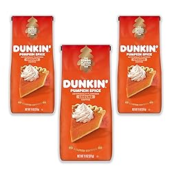 Dunkin' Pumpkin Spice Seasonal Flavor Ground Coffee Variety Pack, 11 Ounce Bag (Pack of 3)