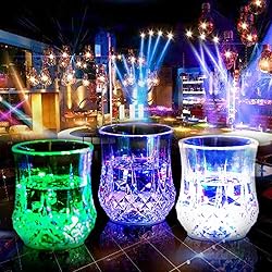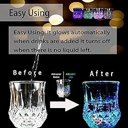 [MATERIAL]: Led cup is made of high quality clear acrylic, one kind of materials, is non-toxic harmless. [LIQUID ACTIVATED]: Glow in the dark. The flash cup light up as soon as liquid is poured into the glass and the colors are fun and vibrant. It turns off when there is no liquid left [SIZE]: 3.34 inches(Height), 2.87 inches(Opening Diameter), Capacity: 0.2l, Weight: 4oz, hold about most 7 oz liquid [Batteries]: LED light up cup is powered by 2x2025 cell batteries. When the batteries wear out, it looks simple enough to replace them. Stick a penny into the battery cover slot, give it a counterclockwise twists, and it pops out to access the battery compartment. The battery compartment has a rubber or silicone o-ring to keep water out [Eye-Catching]: A nifty novelty item for parties and any kind of get-together, a huge access to be a hit at a party. In a lighted room, it will draw attention, but in dim light, it is a real eye-catcher, especially in the multicolor mode, easily pretty and added a fun vibe.NEED MORE CHRISTMAS DECORATIONS? SERACH "2WIN2BUY CHRSITMAS"