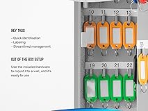 Alloy Steel Imported KEY CABINET - Secure wall mount lock box with lock boxes for flexible key storage. Keep keys organized and easily accessible. 🌈✨ KEY LOCK - Organize and secure up to 90 keys with ease using our key cabinet equipped with a reliable key lock for added protection. 🗝️🔒 COLORFUL KEY TAGS - Colorful key tags enable quick identification, no more fumbling for the right key. Stay organized! 🏷️🔍 KEY MANAGEMENT - Efficiently manage and secure keys for various settings like homes, offices, and businesses with the convenience and reliability of a key cabinet. 📝📋 WALL MOUNT - Comes with mounting hardware for easy installation. Keep keys safe and accessible, hassle-free. 🛠️💡